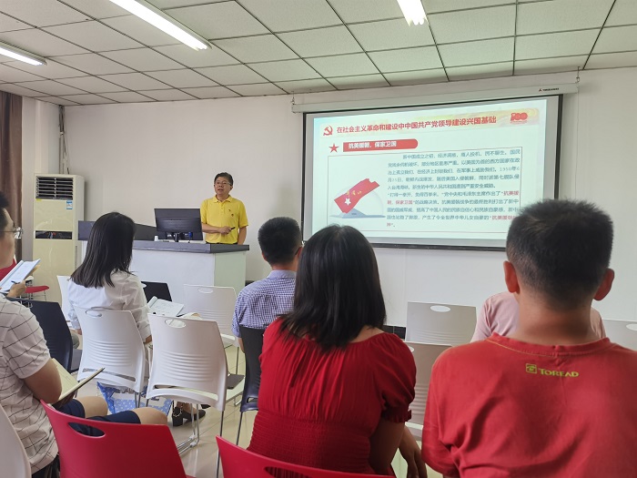 7月30日下午,变态视频 党总支书记汪凯以“中国共产党的百年精神赓续”为题给变态视频 师生党员上了一堂党课,校党史学习教育督导组何成森、周师到会指导。